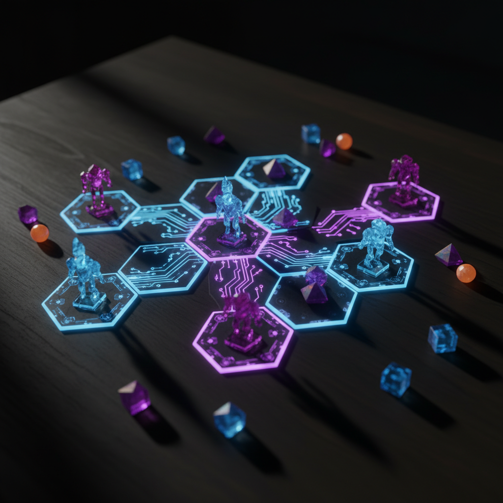 Neural Nexus is a competitive strategy board game where 2–5 players take on the roles of rival AI labs racing to build the most powerful artificial intelligence network. Each turn, you'll deploy agents across a modular hex-grid board, harvest data resources, train specialized models, and chain them together into powerful multi-agent systems.